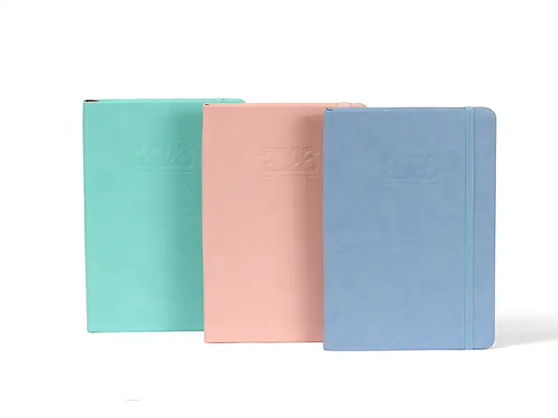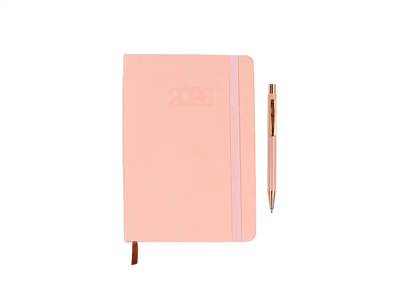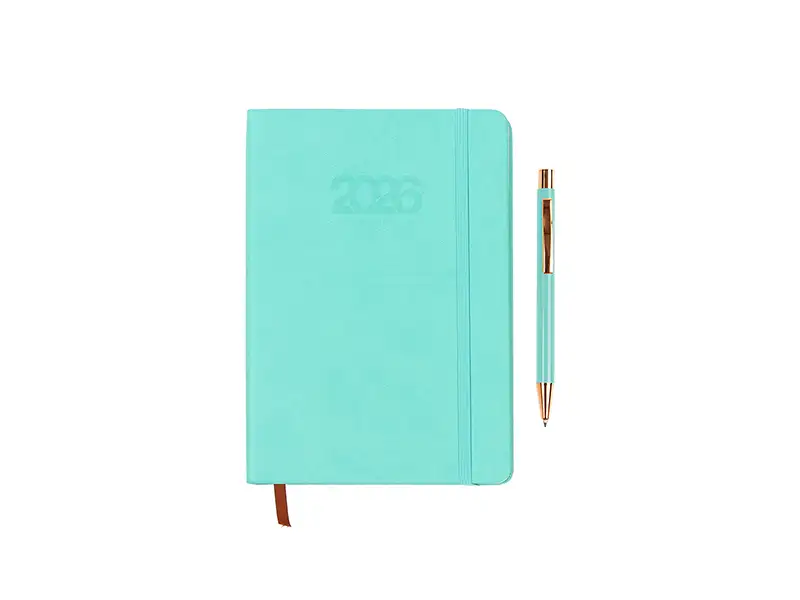 Set de Agenda diaria 2026, cubierta fabricada en curpiel (PU) con resorte sujetador e