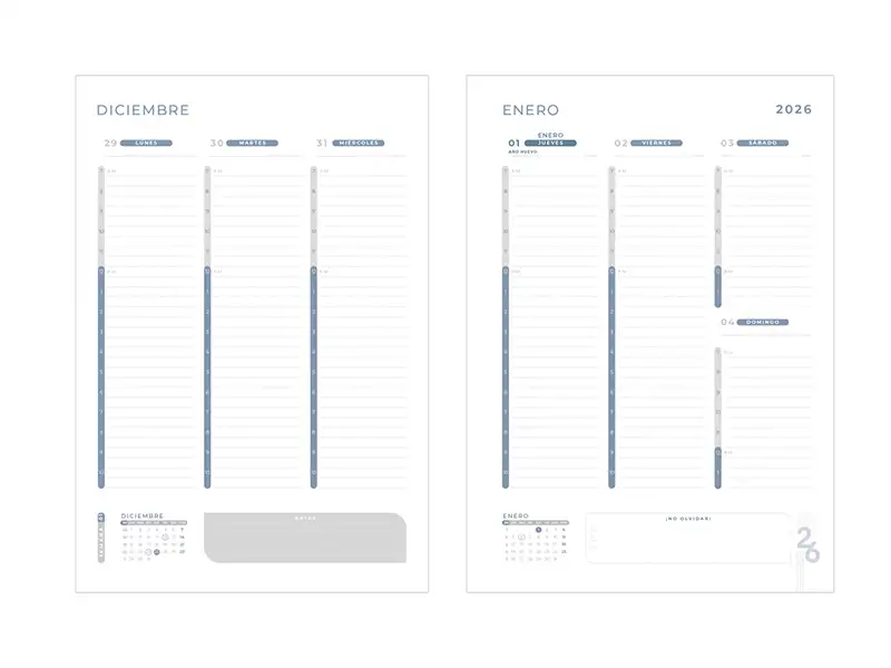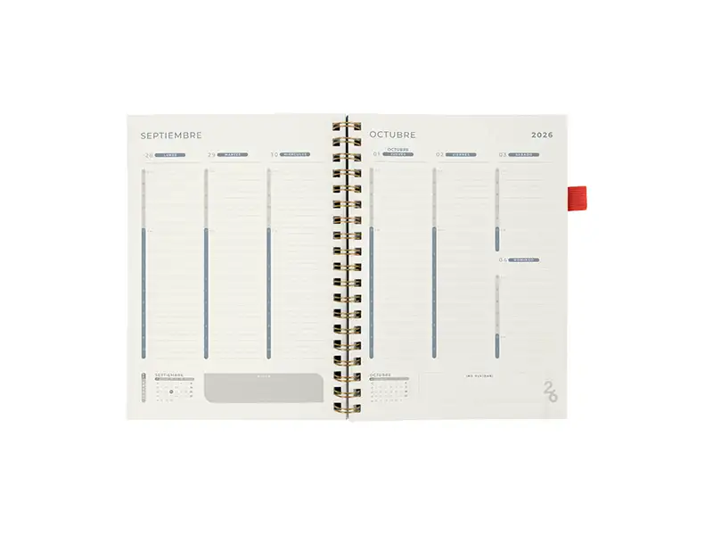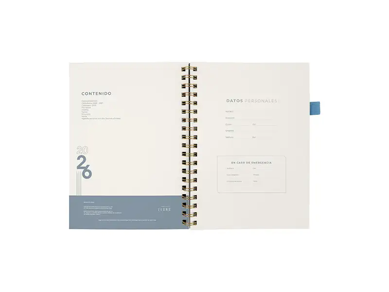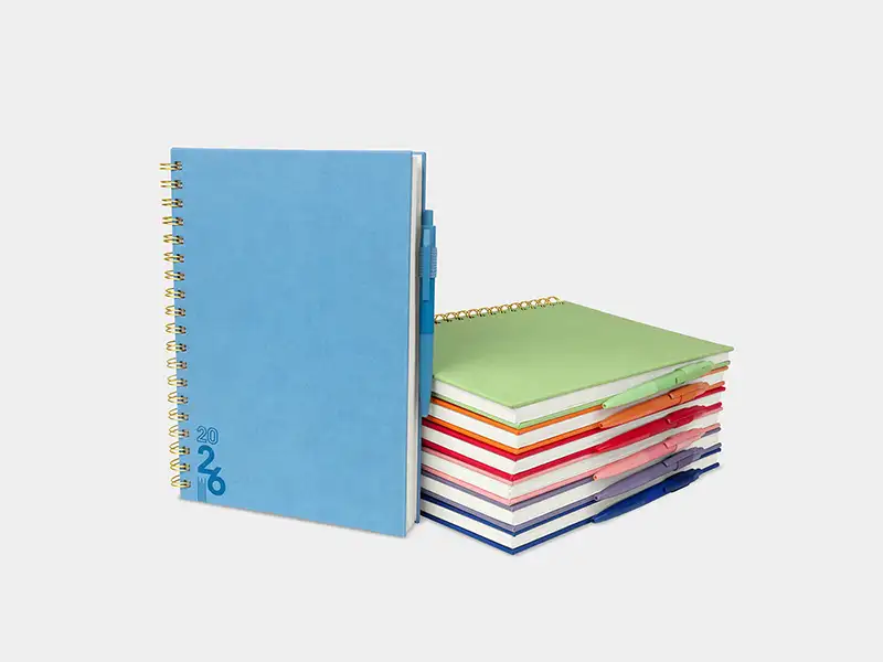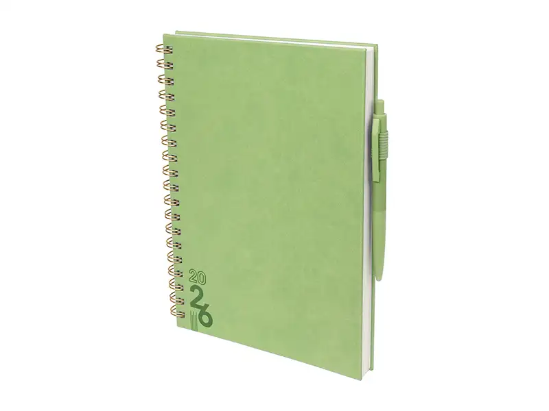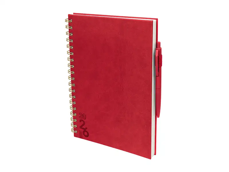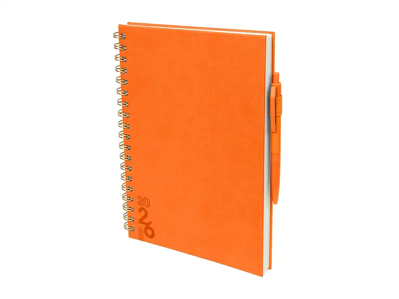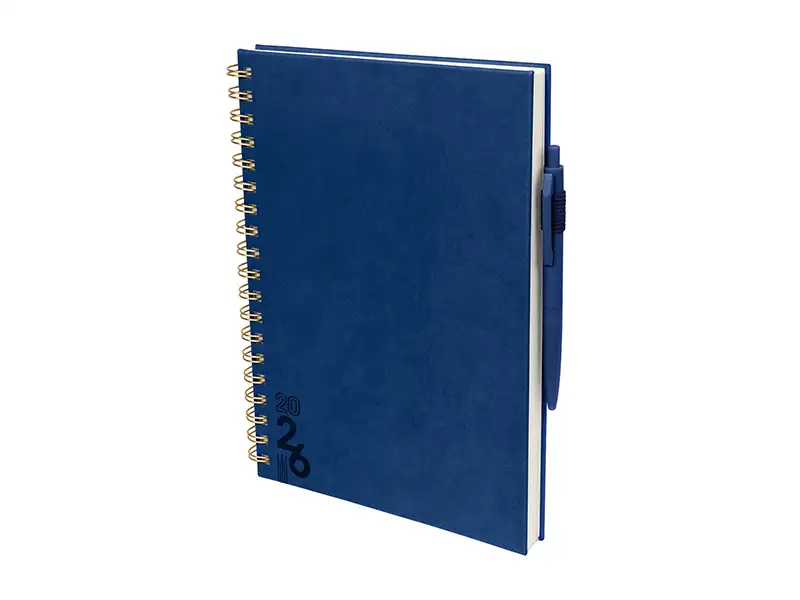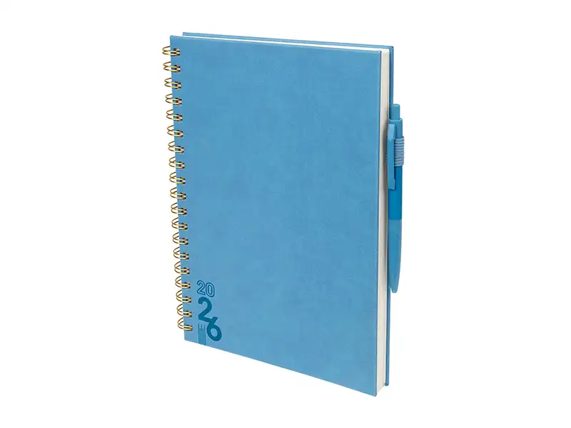 proyectos y días festivos. Incluye caja individual del mismo color a la agenda y bolígrafo.