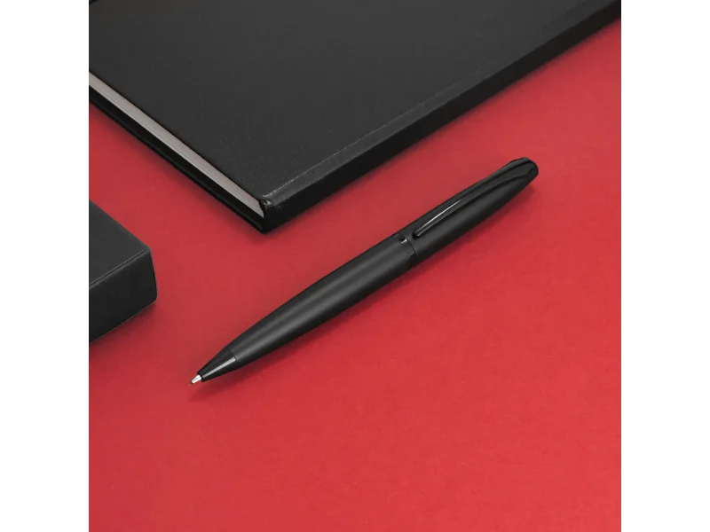 Bolígrafo con apertura giratoria. Cuerpo de aluminio con acabado mate.