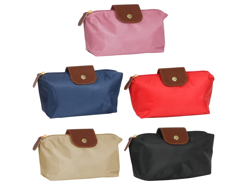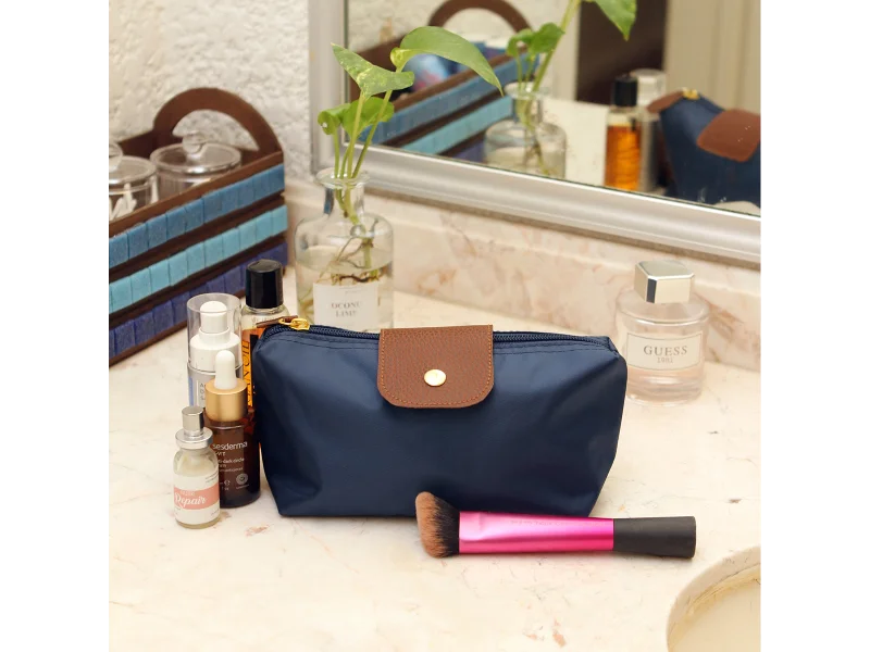 Bolsa multiusos fabricada en poliéster resistente y detalles en curpiel café.